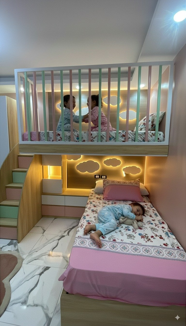 Ideal for siblings’ shared rooms, combining safety, style, and functionality.